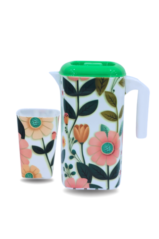Flower Dura Water Set (1 Jug & 6 Glasses)- Square