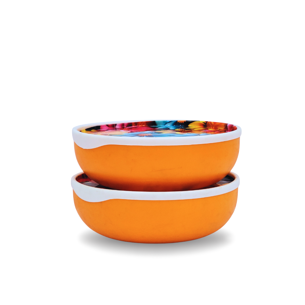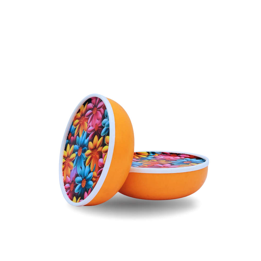 🍊 Vibrant & Stylish: Features a bold orange exterior paired with beautifully designed floral lids that add a pop of color to your kitchen.