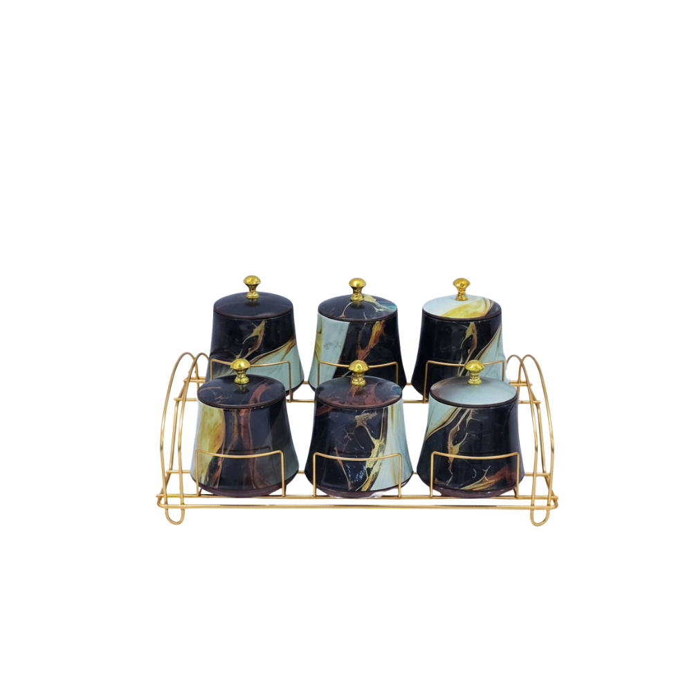 Luxury 6-Piece Royal Masala Rack Multi with Metal Rack – Elegant Kitchen Masala & Condiment Organizer