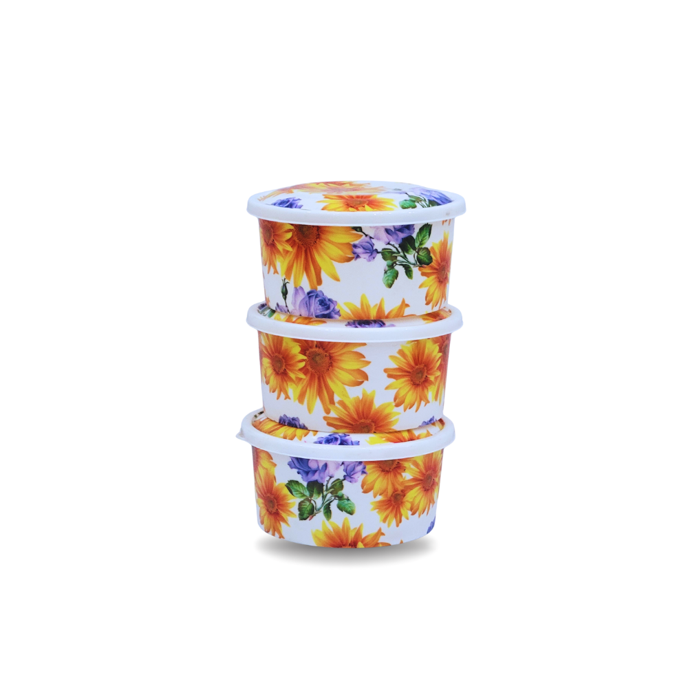 Brighten up your kitchen storage with this beautiful 3-Piece Small Fancy Bowl Set. Featuring a cheerful sunflower design, these compact bowls are perfect for organized storage and adding a touch of nature-inspired beauty to your home.