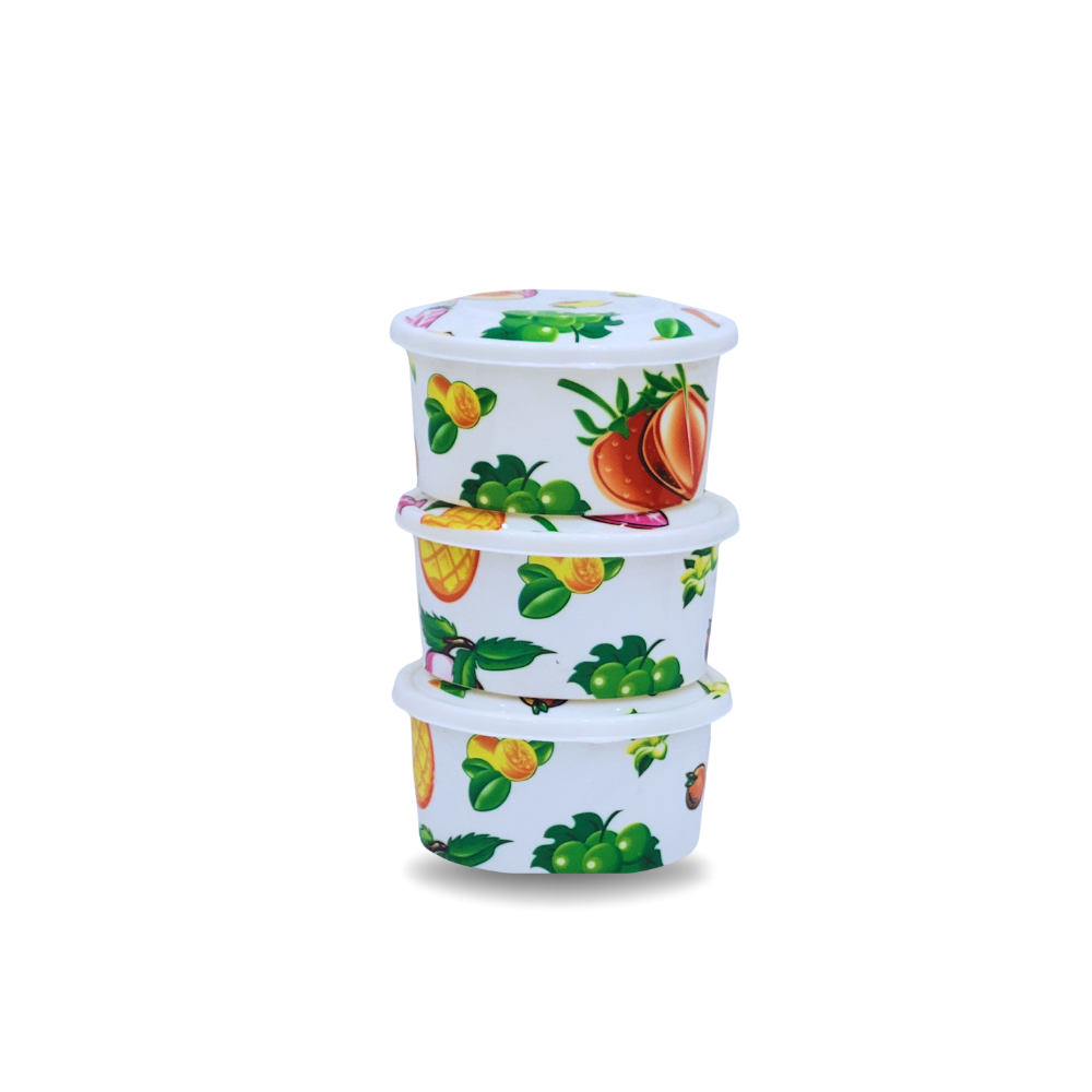 Set Includes: 3 Small-Sized Bowls with 3 matching white Lids.